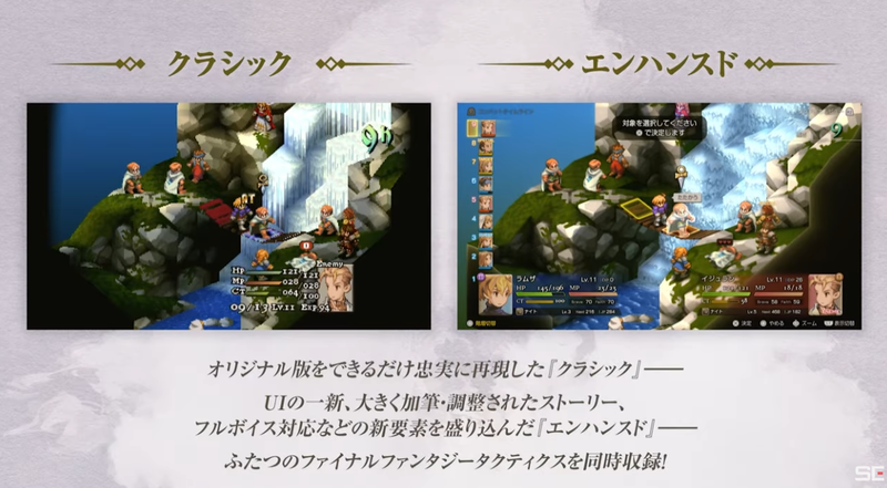タイトルにも書いてるし前回の記事で非常に驚きなニュースがあると言っていたがもう既に情報結構明かされているので言ってしまうとFFTイヴァリースクロニクルズ、元であるPS1版から新要素や調整を含めたエンハンスドモードと原作を忠実に再現したオリジナルモードが楽しめる決定版。9/30日発売予定。